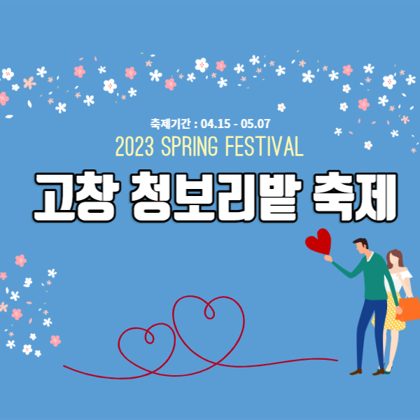2023 제20회 고창 청보리밭축제는 이곳의 대표축제 중 하나로 2004년 처음 시작한 이후로 평균 50만여 명이 다녀가고 있는 전문 축제장입니다 유채와 보리밭을 배경을 두고 진행하는 축제인 만큼 자연경관의 아름다움은 물론 행사장의 뜨거운 열기와 즐거움, 먹거리의 행복함까지 더해갈 수 있는 축제랍니다
