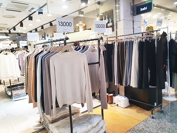 제가 촬영을 2월에 해서 그런지 겨울스러운 느낌이 물씬 나지요? 지금이 3월이니 니트와 가벼운 옷들이 많이 진열되어 있을 것으로 예상됩니다. 이곳은 주로 여성의류가 많고요. 그다음으로는 신발, 가방, 액세서리, 잡화, 꽃 식물 등을 판매하고 있습니다. 남성의류 코너도 있지만 여성의류만큼 많지는 않습니다.