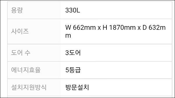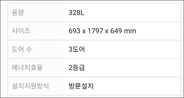 ◆기타사항 : 에너지효율 2등급 / 3 도어 / 방문설치