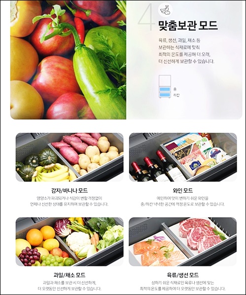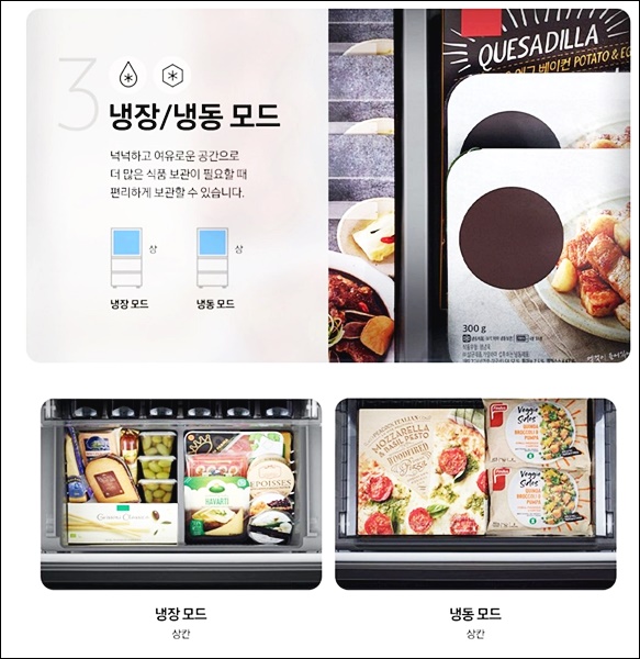 -맨 위칸은 냉장 또는 냉동모드로 변경가능