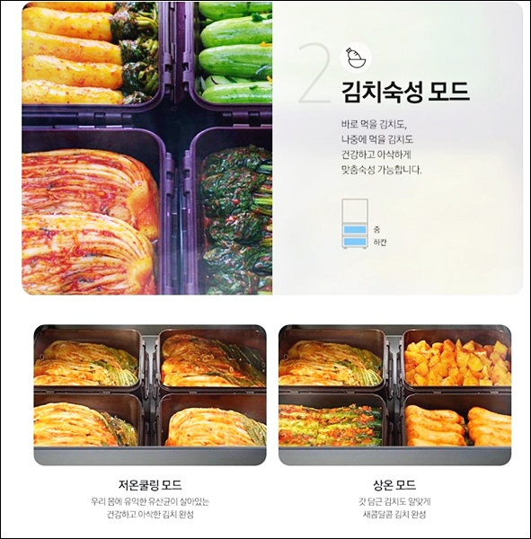 -저염김치, 구입김치, 아삭 김치 모드 등 칸별로 모드선택가능