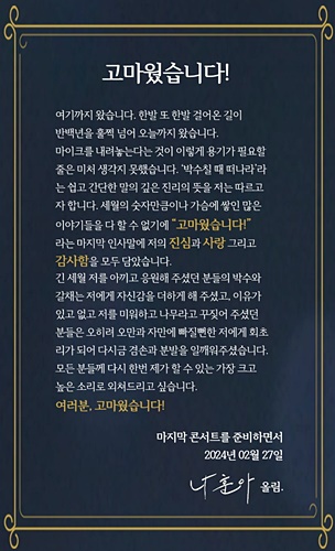 올해 77세로 2024년 은퇴를 선언하면서 마지막 전국 투어를 앞두고 있는 나훈아. 120곡이 넘는 히트곡으로 800곡 이상의 자작곡을 포함, 트롯의 황제를 넘어 가황이라는 별명까지 붙게 되었는데요. 이제 그가 은퇴를 선언하면서 마지막 공연을 눈앞에 두었다고 합니다.