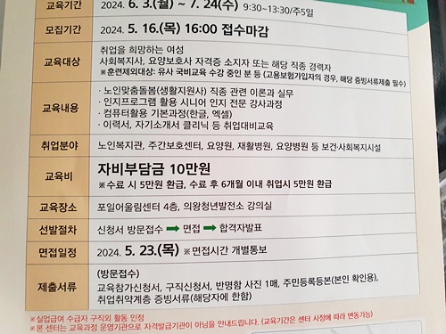 ▶자격여부 : 학력, 연령, 성별 제한이 없으나 요양보호사 및 사회복지사 자격증 소지자를 우대함 이에 관한 관련 자격증이 없다면 빠르게 민간자격증을 취득하여 본인의 전문성을 더욱 높일 수 있음