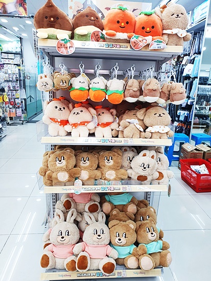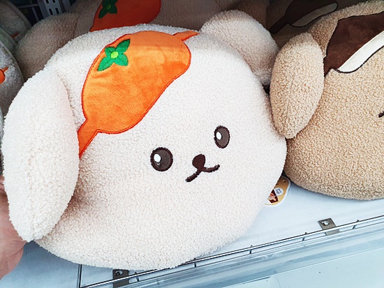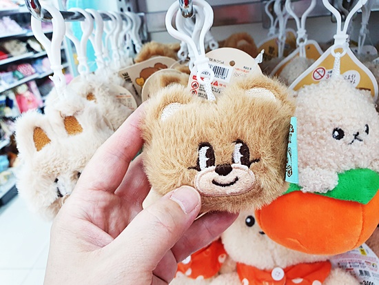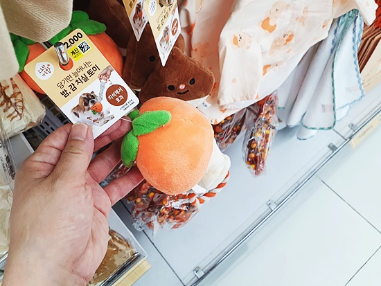 제일 먼저 눈에 띄었던것이 인형류였어요 키링과 같은 작은 인형에서부터 큰 인형, 등쿠션에 이르기까지 가을가을한 느낌의 사랑스러운 디자인이었는데요 감과 밤 머리띠를 두른 것이 인상적이었답니다 털은 보들보들 안고 있으면 기분이 좋아진답니다 인형류는 아무래도 아이들에게 가장 사랑받을 것 같네요