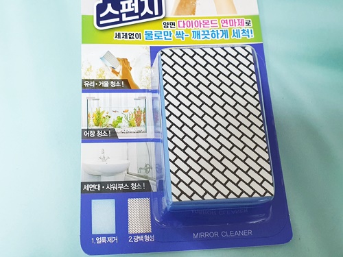 ※사용방법 : 스펀지와 닦을 면에 물을 충분히 적신 후 청소할 거울, 유리, 어항, 세면대 샤워부스의 얼룩표면을 닦아주면 됩니다.