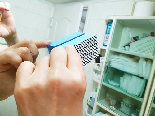 제품 사용 시 주의할 점이 있습니다. 이 제품은 물을 충분히 적신 후에 사용해야 합니다. 물을 적시지 않은 상태에서 사용하게 되면 스크래치가 발생할 수 있으니 주의해 주세요!