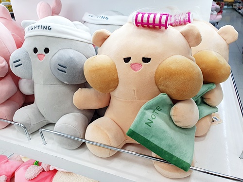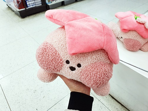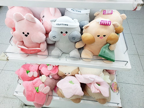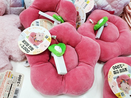 인형, 푹신푹신한 재질의 파우치, 인형 방석, 걸이형의 인형, 거실화 등등 다양합니다.