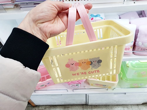 중형과 대형 두 가지의 사이즈가 있고요. 목욕가방하면 앙증맞을 귀여운 바구니도 있습니다 (나들이나 캠핑용에도 재미나게 활용할 수 있을 것 같음)