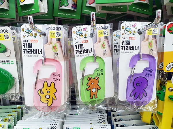 그린, 피플, 핑크의 3가지 색상이 있으며 카라비너형이라 걸기가 매우 편리합니다. 특히나 아크릴타입에 눙눙이 작가 디자인이 들어가니 사랑스러움 가득이네요