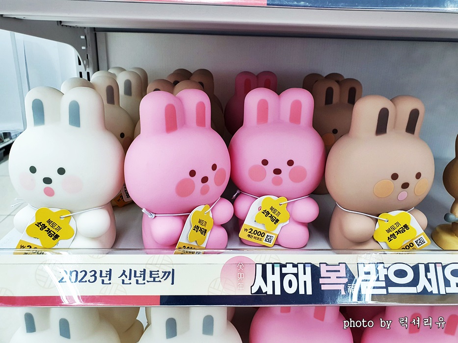 안녕하세요? 럭셔리유입니다 "새해 복 많이 받으세요"란 인사는 사실 식상하지만 새해에는 너무나 중요하죠 그래서 인사를 먼저 드려봅니다 "2023년도 새해 복 많이 받으세요" (인사 잘 받으셨나요?) 한파가 연일 이어지지만 마음만은 따뜻하게 보내시길 바라면서 올해 첫 글을 써봅니다 저는 평소 너무나 다이소를 즐겨찾는데요 (저만 그런 거 아니죠?) 새해에는 또 다양한 제품들이 출시되기에 꼭 다녀오곤 합니다 이번에 다녀왔더니 다이소 토끼 신상이 시리즈 별로 주르륵~ 나왔네요 귀여워서 제 폰에 마구마구 담아보았습니다 어떤 것이 나왔는지 함께 보실까요?