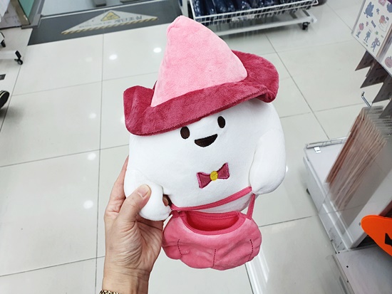 이번 시즌에 눈에 두드러지게 뜨였던 제품이 바로 도기램프가 아닌가 싶은데요. 유령을 익살스럽게 피규어와 해서 더욱 귀엽고 불빛이 나기 때문에 테이블 은은한 조명으로도 아주 좋습니다. 벌써 많은 분들께서 구매하셨던지 빼곡하게 있던 자리가 휑해지는 게 보여요. 사탕바구니를 들고 있는 인형도 사랑스럽습니다.
