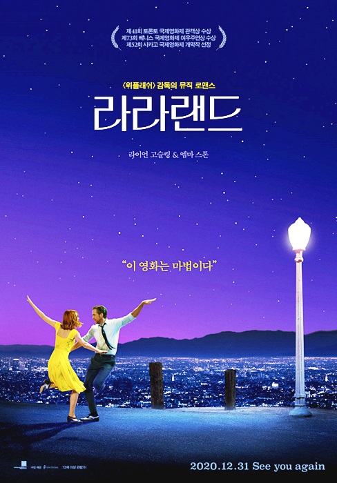 라라랜드처럼 우리네 인생도 어찌 보면 뮤지컬 같은 삶이 아닐까 생각됩니다 타인이 주인공이 아닌 오직 나만이 주인공이 될 수 있는 것이 우리 각자의 인생이니까요 영화 속 두 주인공 세바스찬과 미아처럼 꿈과 사랑을 향해 나아가며 성장하는 모습들은 영화지만 우리들 인생과 같은 경험의 공통분모를 찾아볼 수 있는 것 같습니다 그렇기에 영화를 보면서 공감하며 함께 아파하며 여러 가지 감정을 느껴 볼 수 있는 것이고요