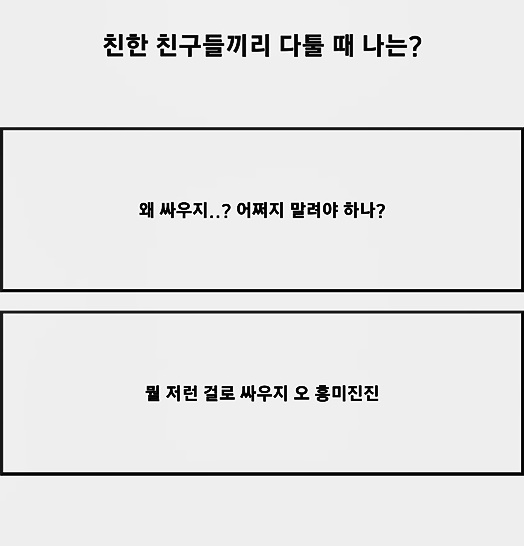 12문항 중 4가지 문항을 가져왔는데요 질문이 재미나고 평소 공감 가는 질문도 있어서 재밌게 해 보았습니다