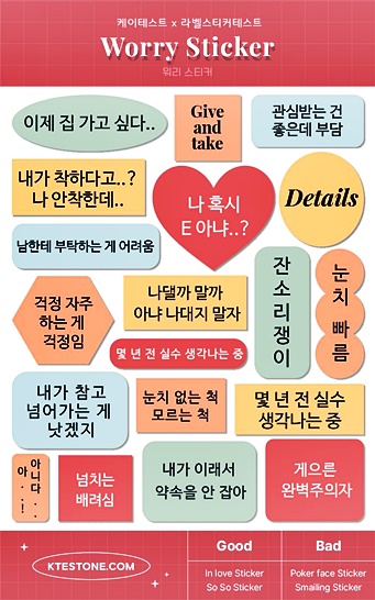 - 저의 테스트 결과를 가져왔습니다 저는 워리 스티커라고 나오는데요 요즘 일과 주부사이에 껴있어서 피곤한 제 내면이 그대로 드러난 것 같아 웃음이 나기도 했습니다