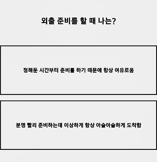 본 테스트는 일반 편과 연애 편 두 가지가 있습니다 두 테스트모두 12문항으로 되어 있고 질문 아래에 답변 2가지 중에 하나를 선택하면 다음 문항으로 스킵되는 시스템입니다 깊게 생각하지 말고 바로바로 생각나는 대로 편하게 답하면 됩니다 제가 검사해 본 것은 일반 편입니다 연애편도 재미 삼아 함께해 보세요