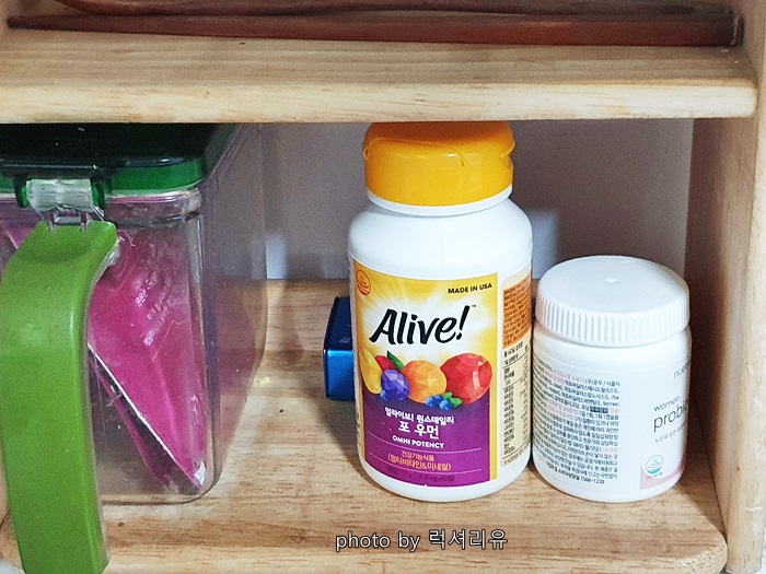 잘 보이는 곳에 두셔야 매일 정기적으로 잘 챙겨 먹을 수 있습니다 저는 눈뜨자마자 물과 함께 먹어요 유산균도 같이 먹지요 몸은 내가 관심을 기울인 만큼 건강으로 보답을 해주더라고요 아침에 물과 함께 꿀꺽! 하면서 하루의 긍정적인 에너지도 함께 꿀꺽! 먹습니다 ^^*