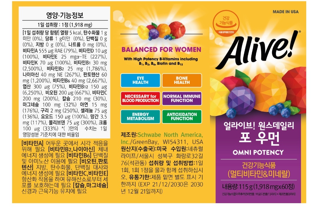 얼라이브 원스데일리 포 우먼 멀티 비타민