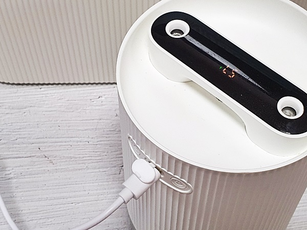 하루종일 틀어 놓으려면 충전선을 연결해야 하는데요. 여기서 꿀팁하나 드린다면 아침에 세탁한 후 세탁물을 집안에 널어놓으면 가습효과가 어느 정도 있습니다. 충전하는 동안 그렇게 가습효과를 유지하다가 저녁 즈음에 무선가습기 활용하시면 하루종일 촉촉한 나날을 보내 실 수 있으리라 생각됩니다.