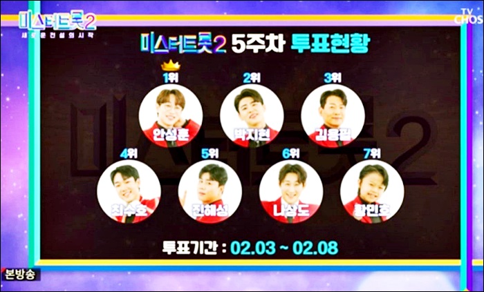논란이 일어나기 시작했는데요 저또한 우승후보라고 여겼던 박서진이 탈락하면서 시청자로써 이 프로그램에 큰 아쉬움을 남기게 되었습니다 새로운 얼굴 발굴이라는데 주력한 나머지 생긴 결과라고 느껴집니다 아무튼 이제 주사위는 던져졌고 남겨진 분들 중 1위를 가리기 위해 매일매일 7명을 선정해 투표해야 하는데요 그 투표방법을 알려드리고자 합니다