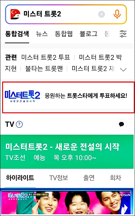 2.미스터트롯2 투표방법 (아래 네모버튼 누르기)