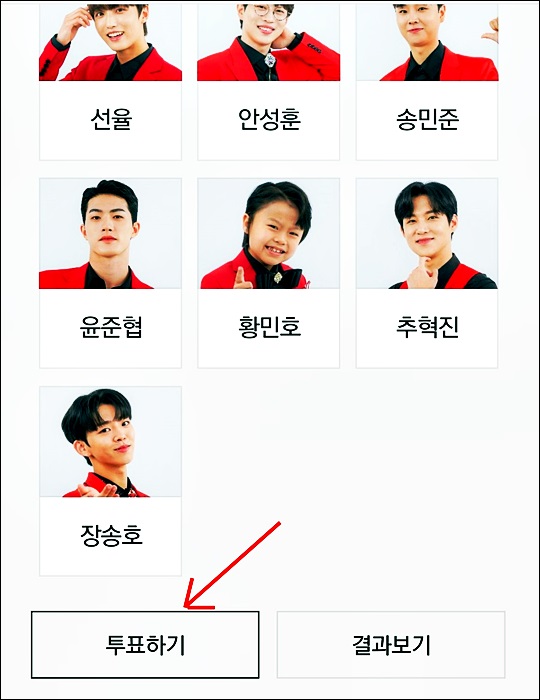 다음주 목요일 오후 10:00 전까지 매일매일 본인이 희망하는 7사람을 뽑아서 선정하면 되는것입니다 "매일매일" 누르는것이 중요함으로 자신이 원하는 가수가 꼭 선정되기를 희망한다면 열심히 눌러서 덕질을 완성합시다!!(원하는 사람을 매일 선택하고요 나머지 분들은 돌려가며 선택하면 아무래도 조금 도움이 되지 않을까합니다)