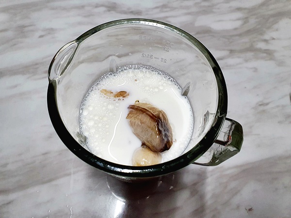 믹서기에 얼린 바나나 2개를 넣고 바나나가 잠길 정도로 우유를 넣어줍니다 이때 올리고당 또는 설탕 2~3큰술 넣어주세요 단맛이 더 좋다는 분께서는 이보다 더 넣으셔도 됩니다