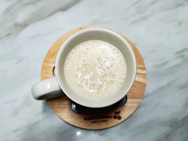저희 집은 주로 큰아들이 이렇게 쭉 마시고 아침을 시작하는데요 갈아 놓고 남은 것은 다시 물병에 담아서 보관해요 다음날 먹어도 맛있습니다
