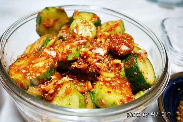 요즘 오이가 너무 저렴하길래 많이 사 와서 오이양념무침을 해 먹었습니다 아삭거리는 식감과 고춧가루양념의 절묘한 조화로 입맛을 돋워주네요 정말 맛있더라고요 다음에 요 레시피도 공개하겠습니다 기대해 주세요