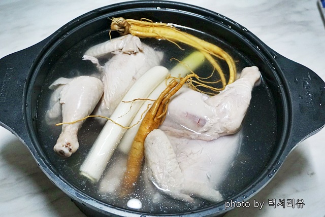 안녕하세요? 몸보신이 매우 중요한 나이가 된 럭셔리유 인사드립니다 나이가 드니 점점 더 국물요리가 좋아지는데요 그중 아주 간단하게 만들어 먹을 수 있는 요리가 있는데요 그건 바로 삼계탕이죠 잡내 없이 삼계탕 맛있게 끓이는법 알려드릴게요 요린이들 오늘 닭백숙 끓이는법 마스터해봅시다