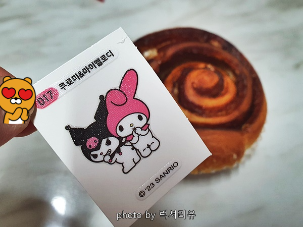 시나모롤빵에서는 17번 스티커 쿠로미&마이멜로디 나왔어요 귀엽습니다 저희 아이는 친구들에게 카톡으로 자랑했더니 부러움을 샀다고 하더라고요 처음 뽑는 것이니 랜덤이라도 중복이 없을 것 같다는 생각에 약간 들뜬 채로 스티커를 개봉했네요