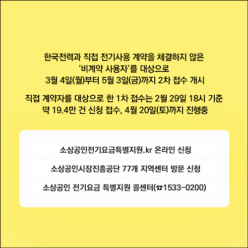 | 한국 전력과 직접 전기사용 계약을 체결하지 않은 '비계약 사용자' | 3월 4일(월)~5월 3일(금) 까지 |