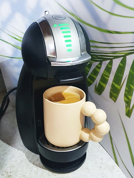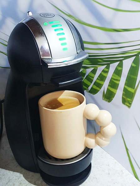 ▶추출법: 물양은 1칸(30ml)으로 내려서 우유와 함께 라테로 드셔도 되고. 뜨거운 물을 더 부어서 아메리카노로 즐겨도 됩니다. 저는 귀찮아서 돌체구스토 5칸에 놓고 더 많이 내려서 마시는데요. 저처럼 연한 커피 좋아하시면 물양을 더 잡아서 내리면 됩니다.