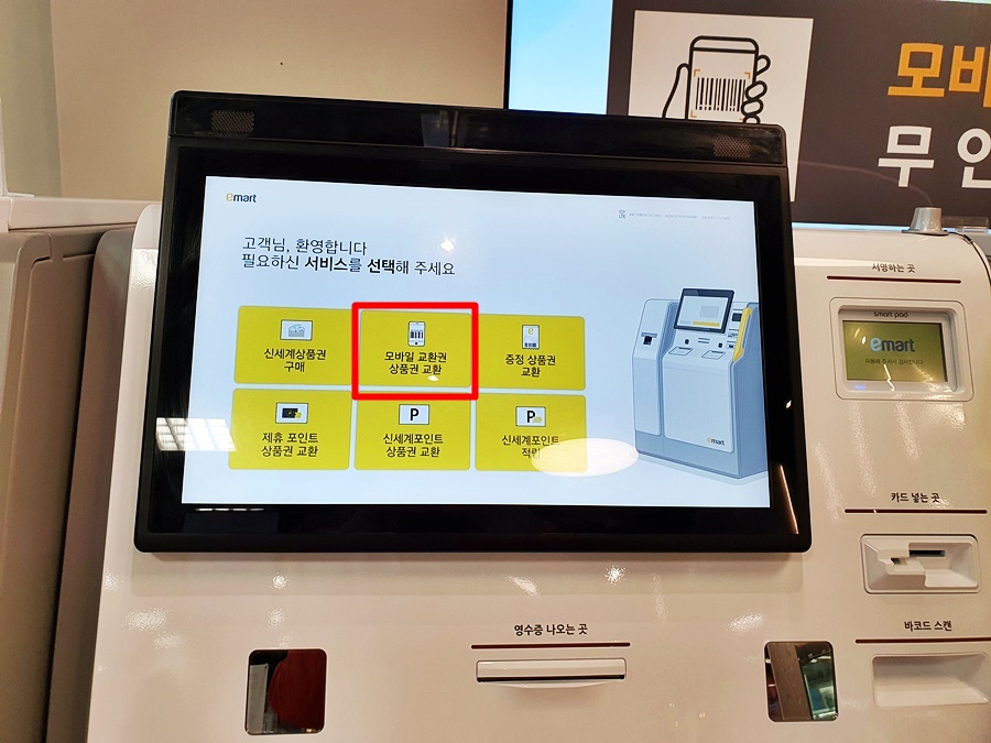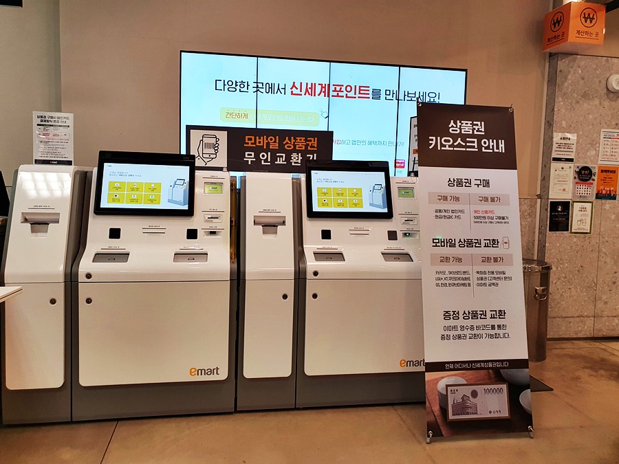 먼저 무인교환기나 상품권샵이 있는 이마트지점을 찾으셔야 합니다