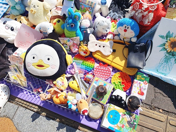 의류, 도서, 완구, 기타 소형 중고물품이면 됩니다. 저희는 주로 인형, 책, 장난감, 의류 등을 가지고 나왔는데요. 제일 인기 있었던 것은 (먼저 팔린 것) 산리오 관련 물품이었습니다. 관리 잘된 인형은 가격대가 잘 맞으면 잘 나가요. 일단 천 원대~삼천 원대의 품목이 가장 잘 나갔고요. 역시나 오천 원대가 넘어가면 잘 안 팔리는 경향이 있습니다. 저렴한 것들은 미리 가격표를 붙여 놓으면 오며 가며 보다가 구매하시더라고요.