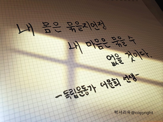 글수 덕분에 3개월 만에 어중간한 글자체에서 조금씩 모양이 잡히는 것을 볼 수 있었습니다. 조금 더 연습하면 저도 일지체를 따라잡을 수 있을 것 같습니다. 제가 이렇게 예쁜 글씨체 연습하는 것을 식구들이 보면서 은근 칭찬도 듣고요. 나름 글자체가 예쁘게 나왔다 싶은 것은 냉장고 앞에 붙여두고 나만의 작품전시회를 하기도 합니다.
