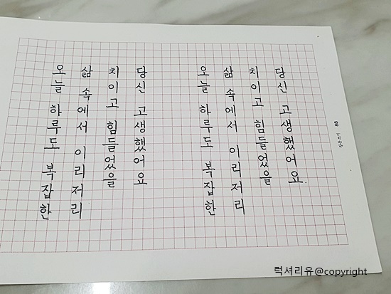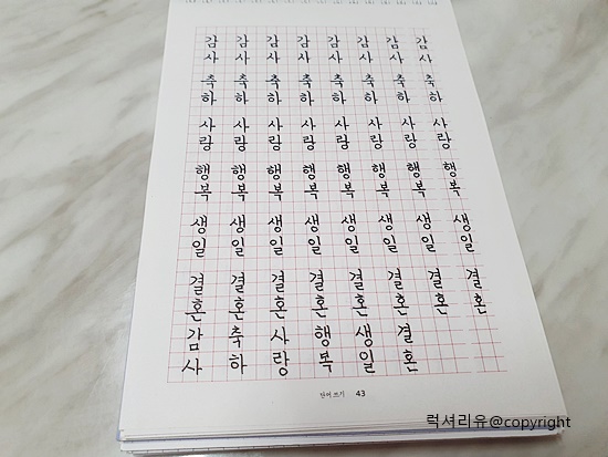 요즘 글씨쓸일 별로 없죠? 그렇지만 예쁜 글씨체 보면 저절로 힐링이 되는데요 직접 작성하는 이는 얼마나 행복할까 생각해 보니 예쁜글씨연습 하고 싶어 지더라고요 그래서 교본도 사서 연습