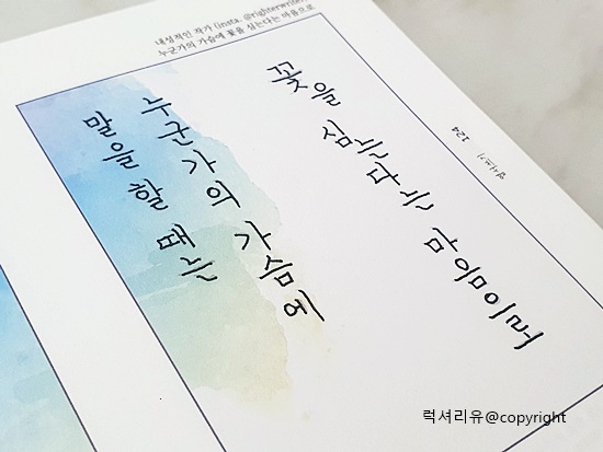 모든 것이 디지털화가 되면서 글씨가 점점 엉망인 제 모습을 보고 이렇게 교본 하나 구입해서 연습하게 되었는데요. 한글이 이렇게나 아름다운 것인 줄 이제야 뒤늦게 깨닫게 되네요. 아마도 평생 글씨 연습하지 않을까 싶습니다. 악필이거나 글씨를 좀 더 업그레이드하고 싶은데 고민되셨다면 글씨를 수놓다 책 추천드리고요 30일 챌린지에도 꼭 도전하시기를 바랍니다