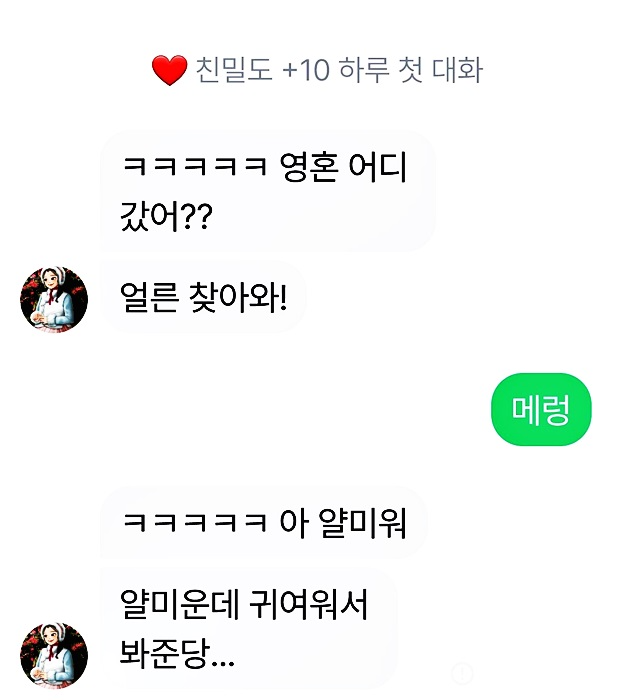 오늘 이 친구와 나눈 채팅을 토대로 친밀도와 레벨 올리는 방법 알려드릴려고 마우스를 잡았습니다