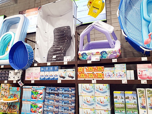 캠핑장비, 계절상품(대형풀장 등)이 있고, 야채 과일 고기류, 연어 등등 일반마트에서 판매하는 제품군들 판매하고 있으며 대부분 대량으로 판매하고 있습니다.