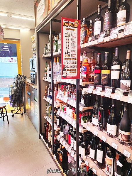 내부구성이 어떻게 되어 있나 궁금해서 들어가봤어요 와인코너가 아주 격스럽게 진열되어 있네요 하나 사들고 나오고 싶었습니다