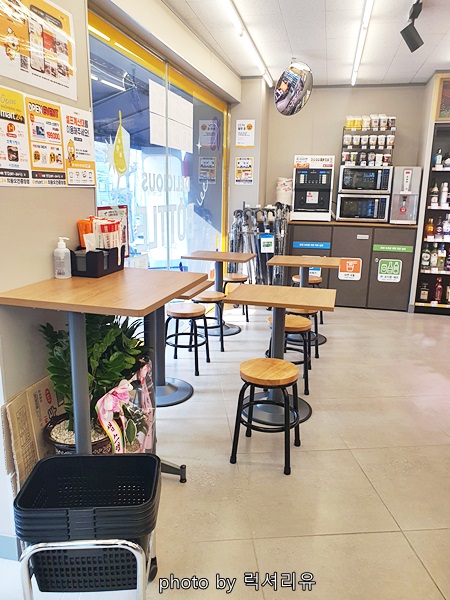 이렇게 앉아서 먹을수 있는 테이블도 꽤 여러 개 됩니다 이제 마스크 사용도 권고로 바뀌어서 이곳에서 자유롭게 먹기 좋게 되었네요 가끔 그녀님과 함께 이곳에 도란도란 앉아 바깥 구경하며 낭만 돋게 컵라면 한 사발 해봐야겠습니다
