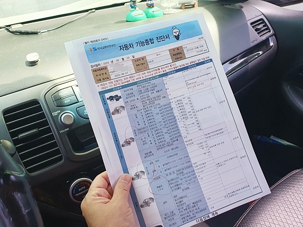 대기하는 차량이 많지 않으면 10분 채 안 걸리는 검사 시간이므로 대기시간은 순삭 지나가게 됩니다 검사 종료 시 직원분의 안내에 따라 자동차 기능 종합 진단서를 받게 되는데 특별한 문제가 없으면 통과되고 문제가 생길 시 문제를 해결한 후 다시 검사를 받아야 합니다