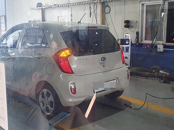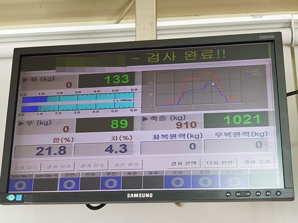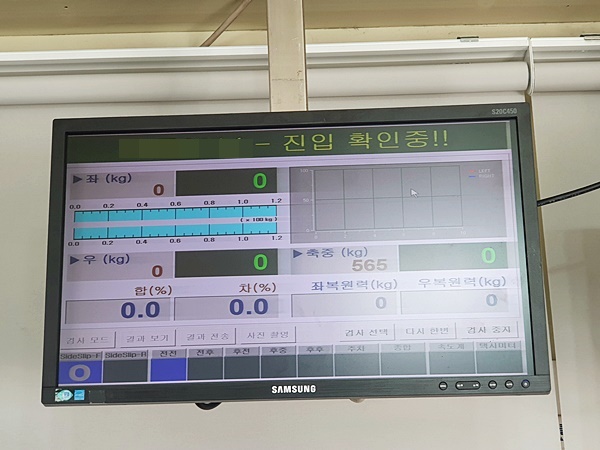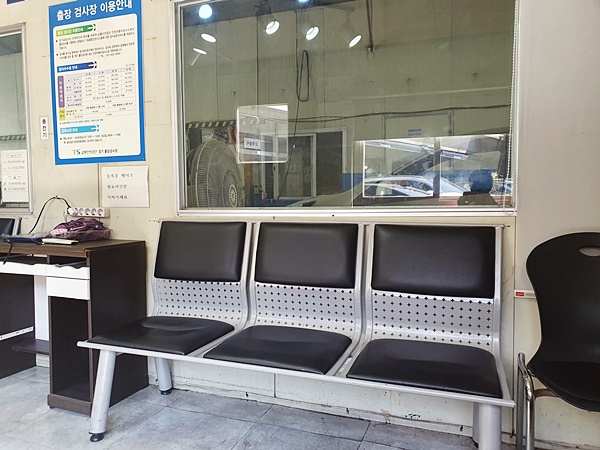 먼저 해당 검사소에 도착하면 직원분 안내에 따라 주차를 하고 시동을 켠 채 내리면 됩니다 이후에는 직원분께서 차량을 이동시켜 검사라인 위에 올려놓고 검사를 실시하게 됩니다 차주는 대기실에서 모니터 화면을 보며 진행상황을 보게 됩니다