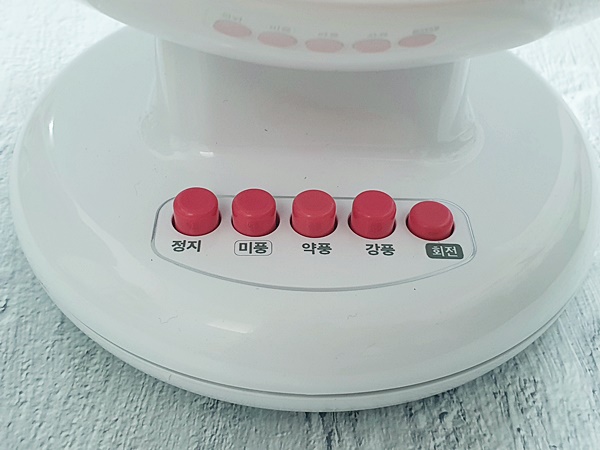 저희 집에 있는 다른 것들은 다이얼로 대부분 되어서 돌려 조절하게 되어있는데요 이 제품은 레트로 감성을 자극하는 버튼식입니다 그래서 조절하기가 더욱 쉬워요 직접 미풍부터 강풍까지 눌러서 사용해 본 결과 미풍에서는 정말 소음이 거의 없었습니다 수면 시에 사용하면 딱 좋고요 약풍은 더운 날 활동할 시간에 활용하면 되겠더라고요 강풍은 사무실이나 공간이 넓은데 바람이 더 필요한 곳에서 사용될 것 같습니다 일반 가정집에서는 강풍사용할 일이 거의 없어요 이미 미풍 약풍으로도 훌륭하니까요 마지막 회전 버튼을 누르면 45도 각도 범위에서 돌아갑니다 회전할 때도 소음이 없어 좋습니다 그래서 더욱 저소음 써큘레이터 추천해 드리는 거고요