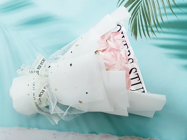 모든 식이 완료된 후에는 이렇게 쇼핑백에 넣어서 비누꽃다발이 다치지 않게 들고 다니세요! 식당 갈 때 잠깐 놔두기에도 정말 좋을 것 같습니다.