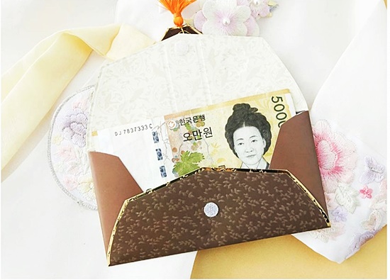 사실 한때 용돈 박스가 유행했었죠 그렇지만 경기가 침체되면서 용돈박스에서 줄줄이 나오는 현금다발은 부담으로 돌아오게 되었는데요 이럴 땐 용돈봉투가 최고입니다 한복의 느낌을 살려서 나온 고급스러운 용돈봉투예요 여기에 작지만 소중한 현금을 넣어서 선물해 보세요 대부분 용돈봉투를 부모님께 드릴 텐데요 위에 추천드린 홍삼스틱+용돈봉투 이런 조합으로 선물해 드려도 정말 좋을 것 같습니다 뭐니 뭐니 해도 아이나 어른이나 현금을 제일 좋으니 이 부분은 빼놓을 수 없겠네요 미리 용돈봉투 마련하셔서 좀 더 특별한 추석 맞이해 보세요
