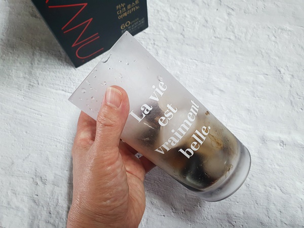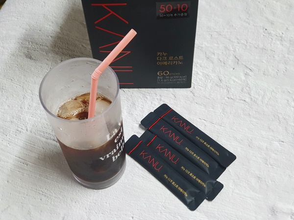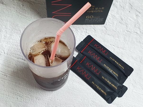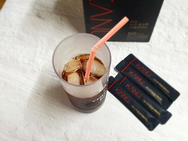 원래는 미니로만 먹었었는데요 이렇게 차갑게 아아로 먹기에는 미니는 양이 부족한데요 1 스틱으로 한 컵 시원하게 먹기에는 일반 KANU가 훨씬 좋은 것 같습니다