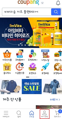 1. 먼저 앱 하단의 마이쿠팡을 클릭해 줍니다 (PC버전도 같은 과정임)