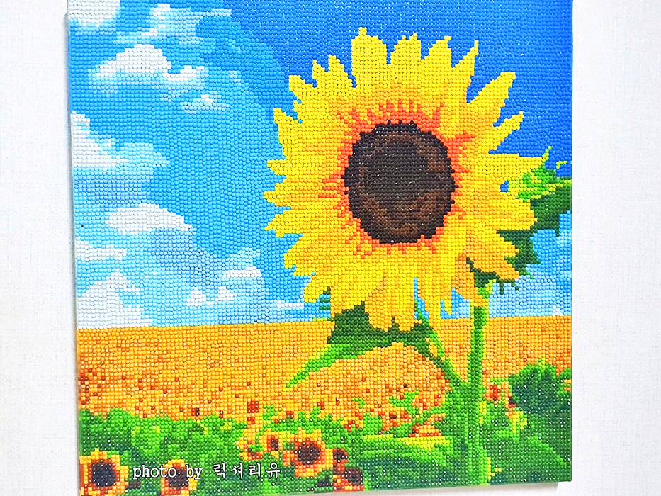 해바라기 또한 금전운을 상징하는데요 해바라기안에 수많은 씨앗과 황금빛깔이 돈을 상징한다 하여 그런 의미가 있다고 합니다 현관 열고 들어왔을 때 잘 보이는 곳에 두면 좋다니 참고해서 걸어 두면 좋겠네요 저는 해바라기를 집안에 두고 싶어서 제가 일일이 보석십자수로 만들어서 벽에 걸어두었는데요 풍수지리 인테리어 상으로 큰 의미를 뜻한다고 하니 올해 해바라기 그림이나 저처럼 보석십자수로 한 알 한 알 정성껏 만들어 집안에 둔다면 더 큰 의미가 있지 않을까 합니다