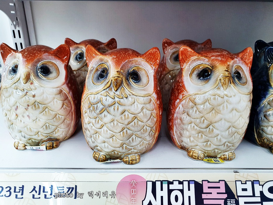 금전운이나 행운을 부르는 장식품으로는 여러분께서 익히 알고 계시는 부엉이, 해바라기 등이 있고요 그 외 현관문 위에 다는 종, 생명력 있는 식물 등이 있습니다 저희 집에는 부엉이 장식이 없는데 이걸 꼭 하나 장만해야겠다는 생각을 문득 하게 되네요 특히 부엉이는 밤 동안 새어나갈지도 모르는 돈을 지켜준다는 의미가 있죠 그런 의미에서 기운이 드나드는 현관 앞에 두면 좋다고 합니다 저는 부엉이 몇 마리 사서 여기저기에 두어볼까 봐요 ㅋ